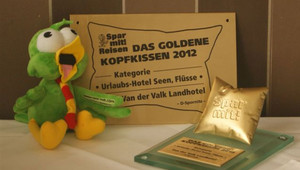 Am 08. März 2012 haben wir, im Rahmen einer Preisverleihung unseres Partners Spar mit! Reisen in der Berliner Universal Hall, das Goldene Kopfkissen in der Kategorie „Flüsse und Seen“ gewonnen. Ausschlaggebend waren, laut der befragten Gäste, bei mehr als 2.600 Übernachtungen, das tolle Preis-Leistungs-Verhältnis, die super Verpflegung und unser zuvorkommendes Personal.