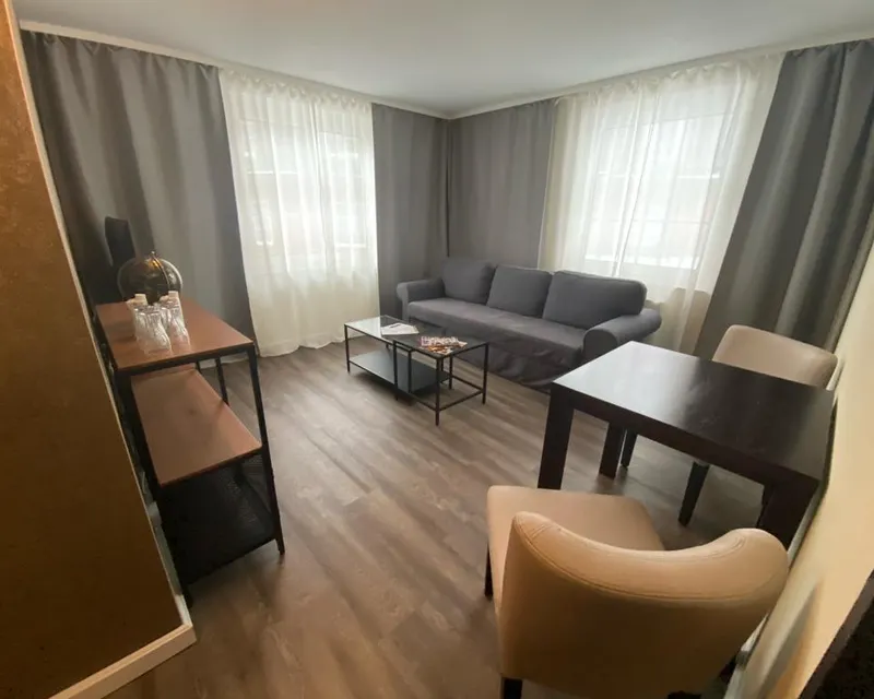 Unsere Suite verfügt über folgende Ausstattung: Schlafbereich mit Twin-Bett und Wohnbereich mit Sitzecke, Schreib-/Esstisch, Flatscreen TV, Garderobe mit Kofferablage, Telefon und kostenfreies WLAN. Das Bad ist mit WC und Föhn ausgestattet.